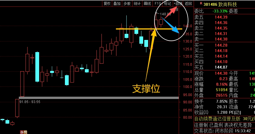 $致尚科技(SZ301486)$ 近期走势比较强,连续大幅拉升之后,还能在高位震荡走高,短线来看就关注脚底横线的支撑情况,能稳住就还能继续震荡拉高,但如果站不稳就要注意短线的回调整理了,需要控制仓位应对,不纠结。#复盘记录# #炒股日记#