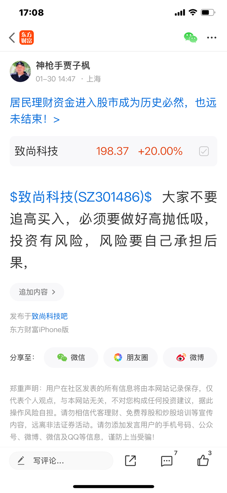 $致尚科技(SZ301486)$ 震荡上涨的股票,大家不要追高买入,必须要做好高抛低吸,我是不推荐股票的,大家不要跟我买卖股票,大家自己买什么样的股票是和我无关的,因为我是免费和大家一起交流股票,我是和大家一起学习,我的观点仅供参考,不构成任何投资建议,投资有风险,风险要自己承担后果,