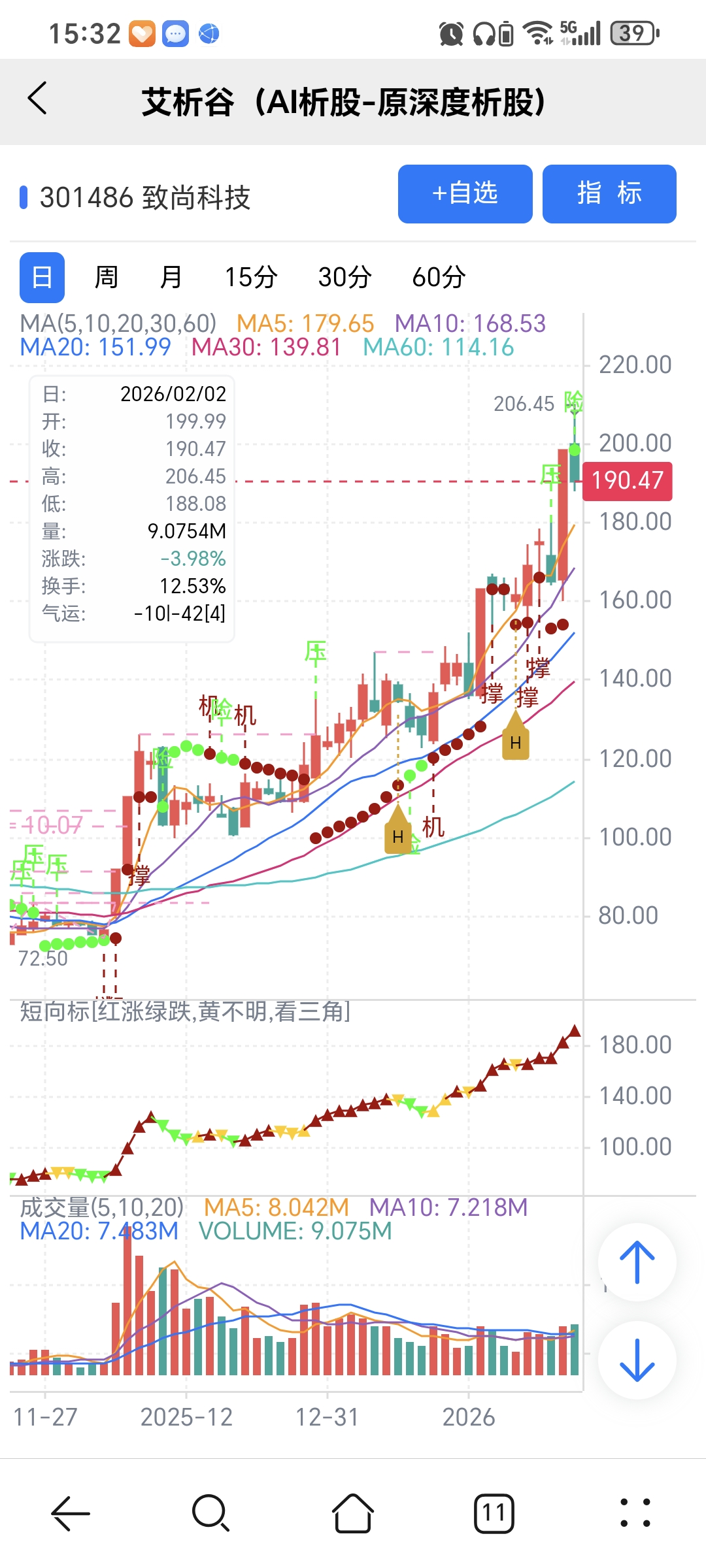 AI模型选股,量化指标识别关键点,简单技术分析确定买卖点,结合量化和人工综合运用,才能有优势。致尚科技