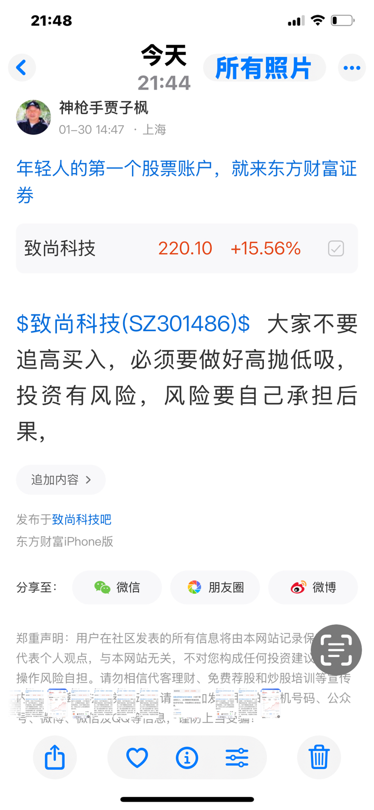 温馨提示: 1.根据《证券法》规定,禁止编造、传播虚假信息或者误导性信息,扰乱证券市场;2.用户在本社区发表的所有资料、言论等仅代表个人观点,与本网站立场无关,不对您构成任何投资建议。用户应基于自己的独立判断,自行决定证券投资并承担相应风险。《东方财富社区管理规定》