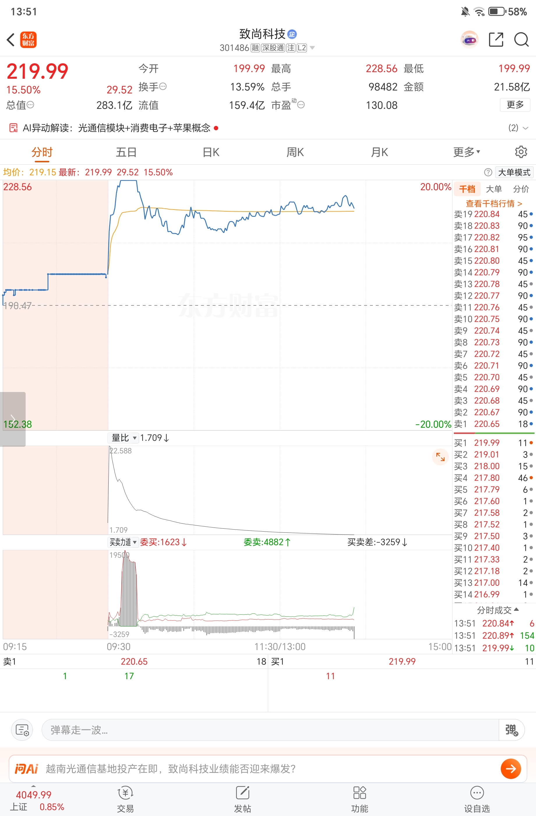 $致尚科技(SZ301486)$ 我今天卖了来说说我的一个看法,有昨天盯盘的小伙伴吗?你们应该也发现了一个异常 这票是量化的 90,45 这些卖单是一秒钟出来的