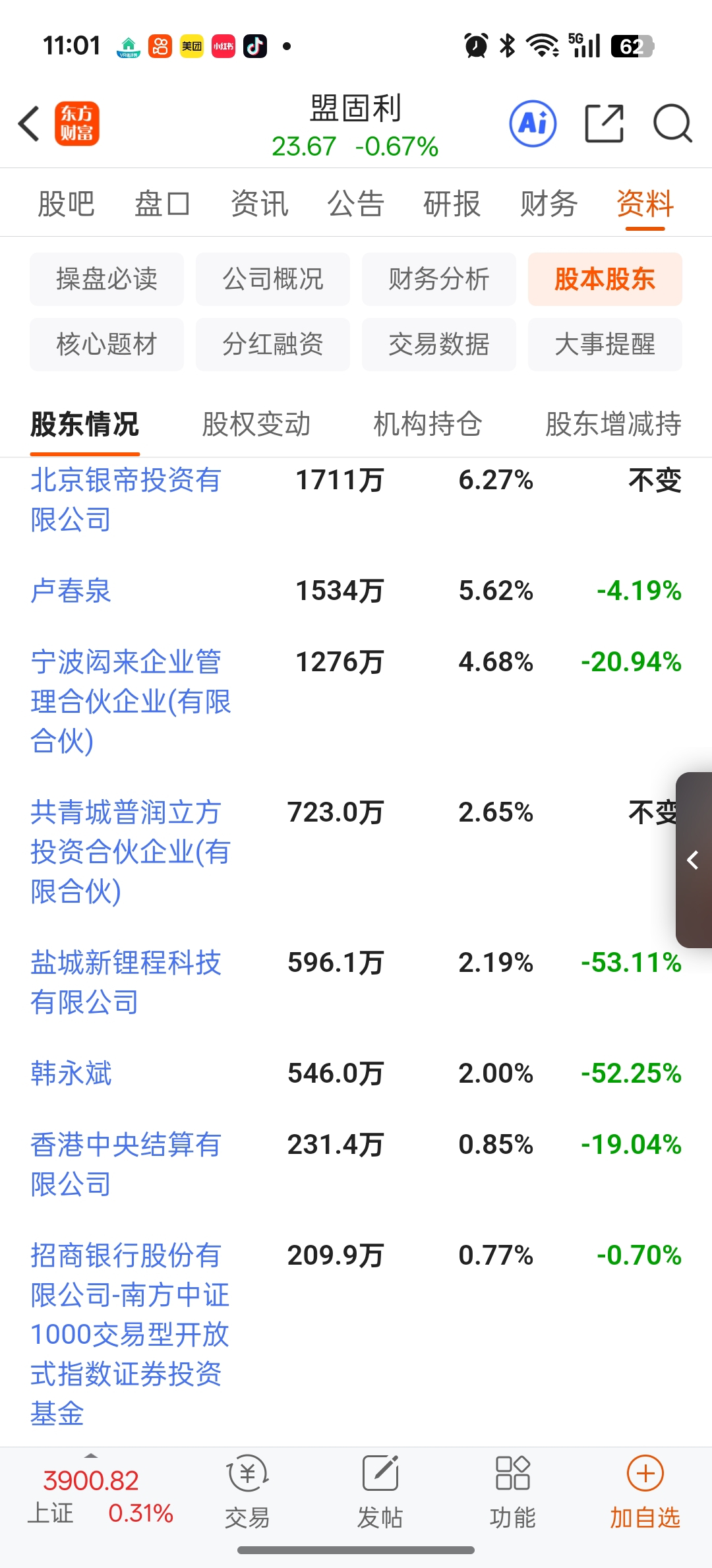 $盟固利(SZ301487)$ 全部是减持的,大机构主力都在出货,怎么可能会涨了,都在比跑得快