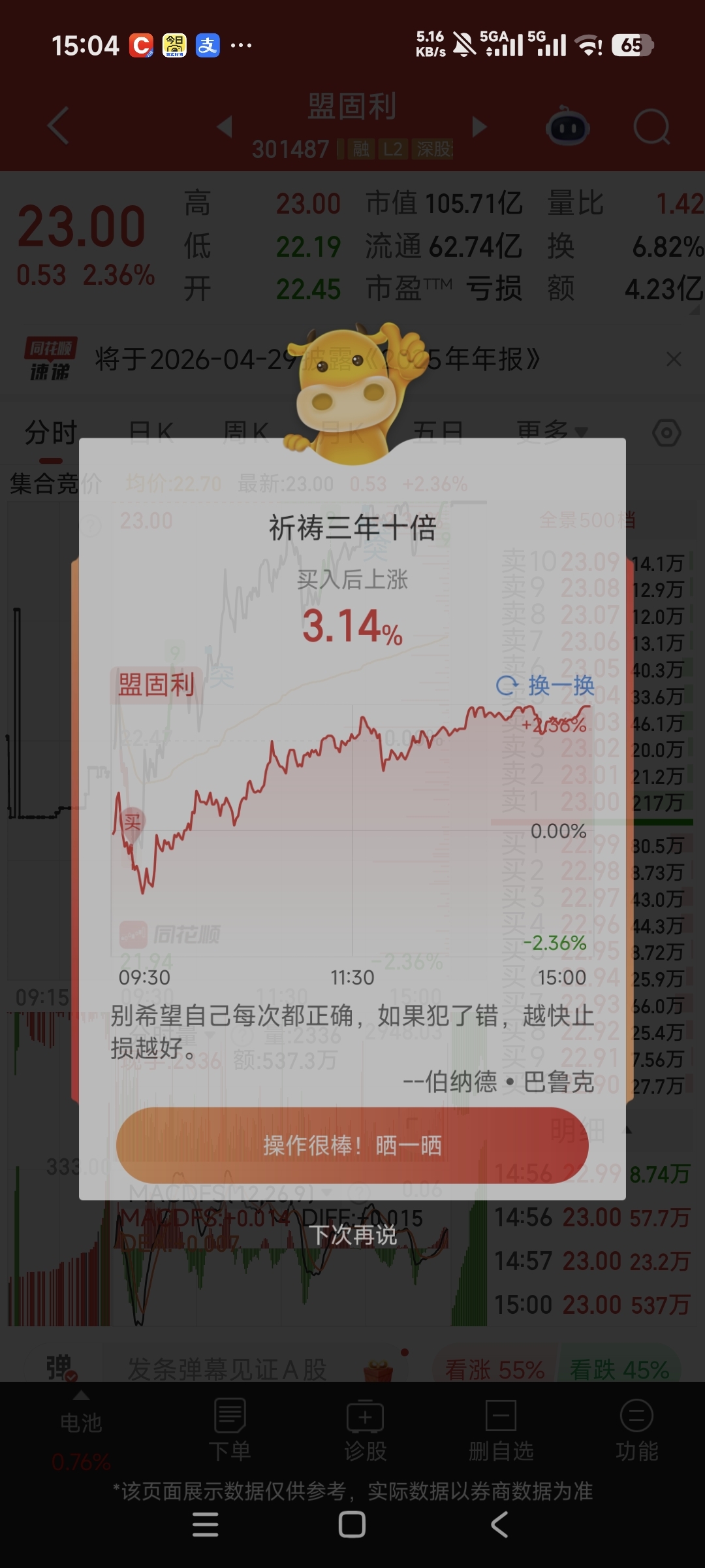 $盟固利(SZ301487)$ 明天不会跳空高开吧