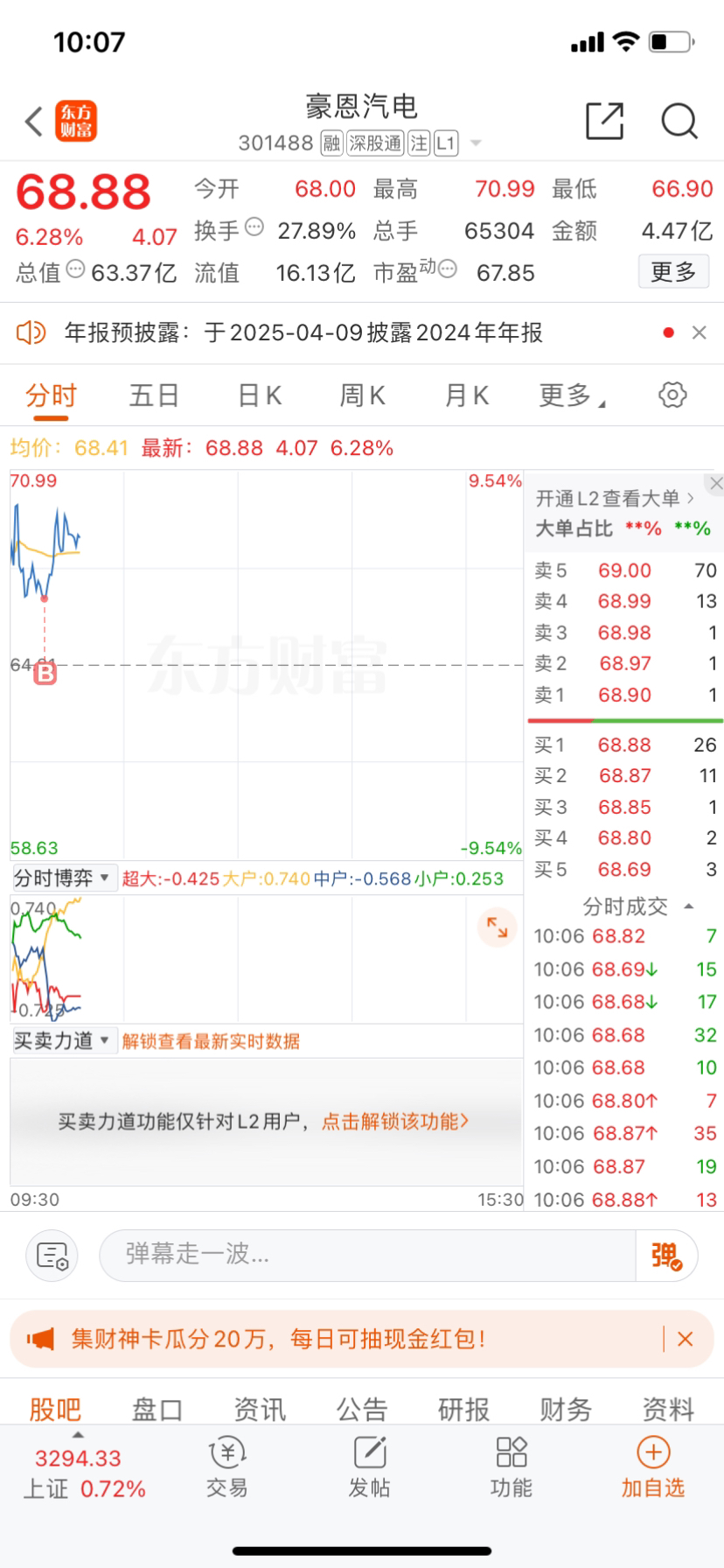 盘前推荐$豪恩汽电(SZ301488)$ 给了低吸机会,,不知道有没有兄弟姐妹们跟上节奏