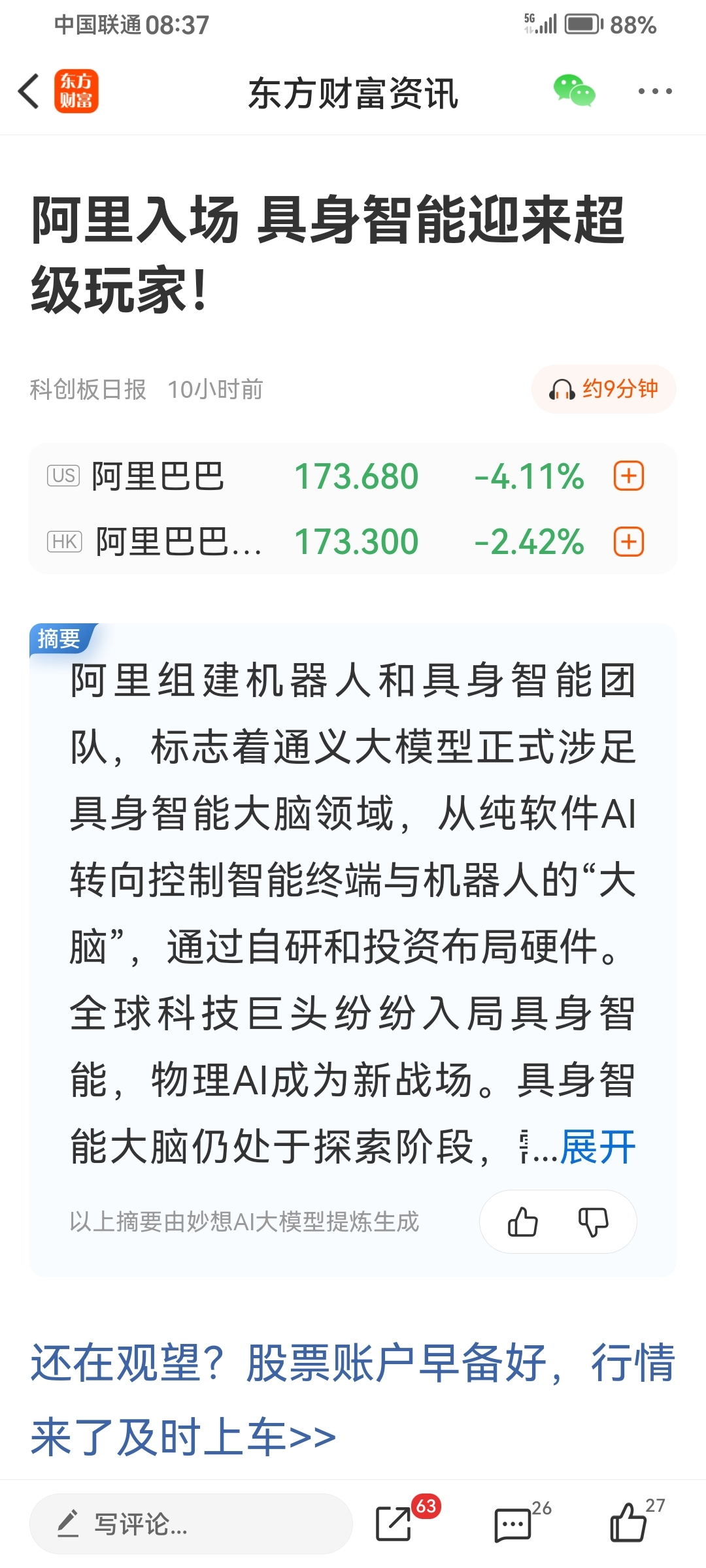 $豪恩汽电(SZ301488)$ 在2025云栖大会上,阿里云与英伟达在物理AI领域达成合作。而此次阿里组建机器人和具身智能的团队,标志着阿里通义大模型正式涉足具身智能大脑领域。