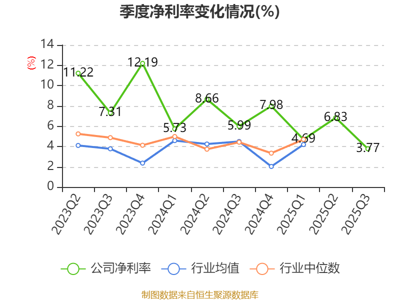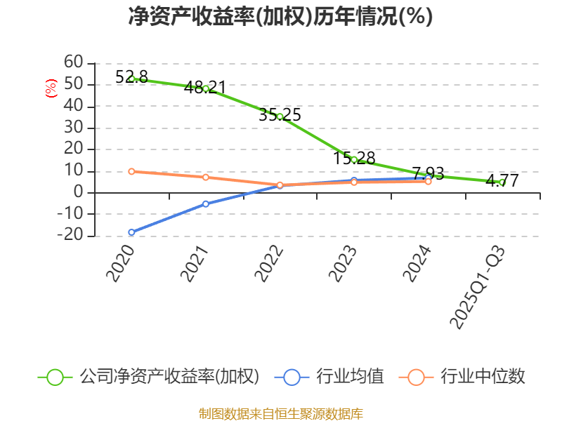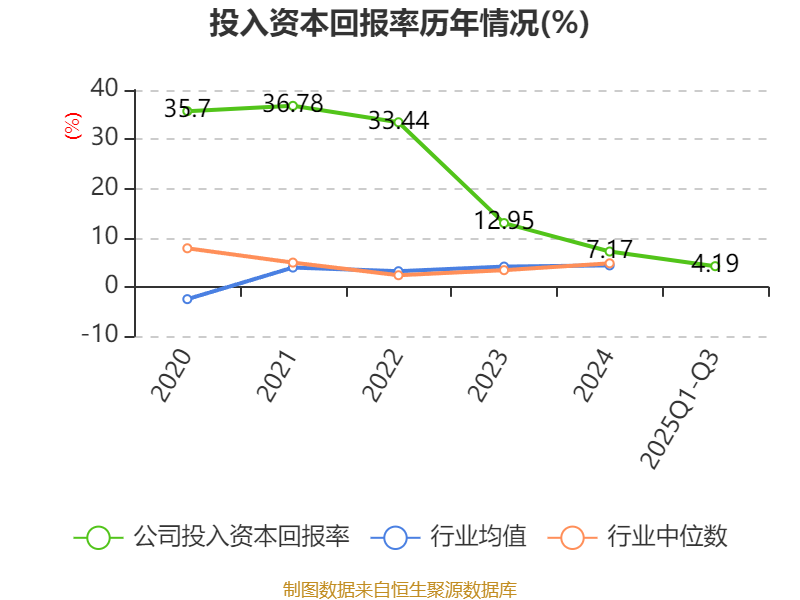 盈利能力方面, 2025年前三季度公司加权平均净资产收益率为4.77%,同比下降0.62个百分点。公司2025年前三季度投入资本回报率为4.19%,较上年同期下降0.74个百分点。