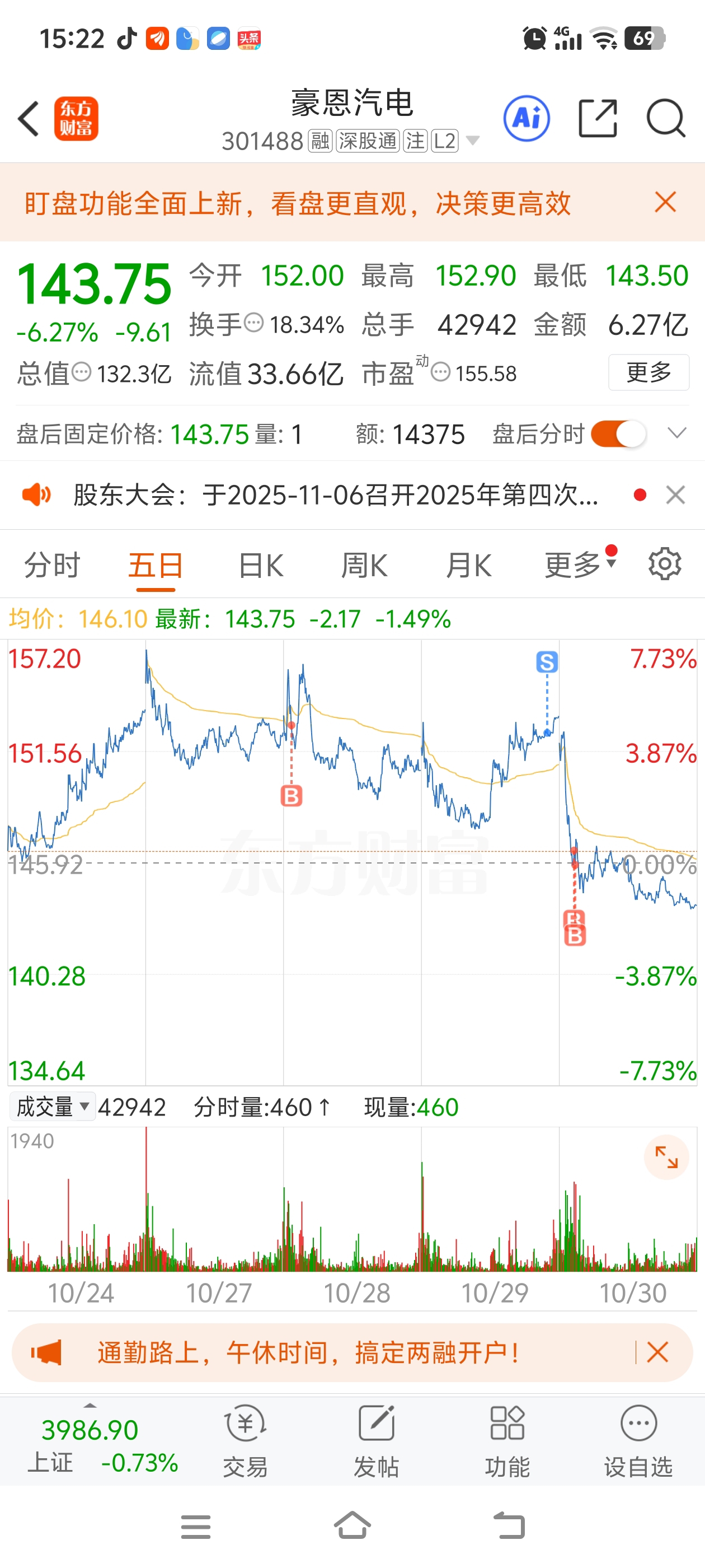 $豪恩汽电(SZ301488)$ 昨天平盘走了。今天又抄底又挂上了。躺平不动。