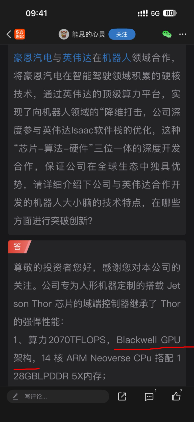 $豪恩汽电(SZ301488)$ 今天大涨的原因就是此条互动信息:采用Blackwell GPU ,懂的都懂,目前最牛的AI芯片