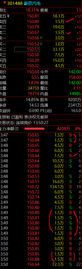 注意到没,好多1.5万的买单和卖单,明显是量化机器人在买卖.