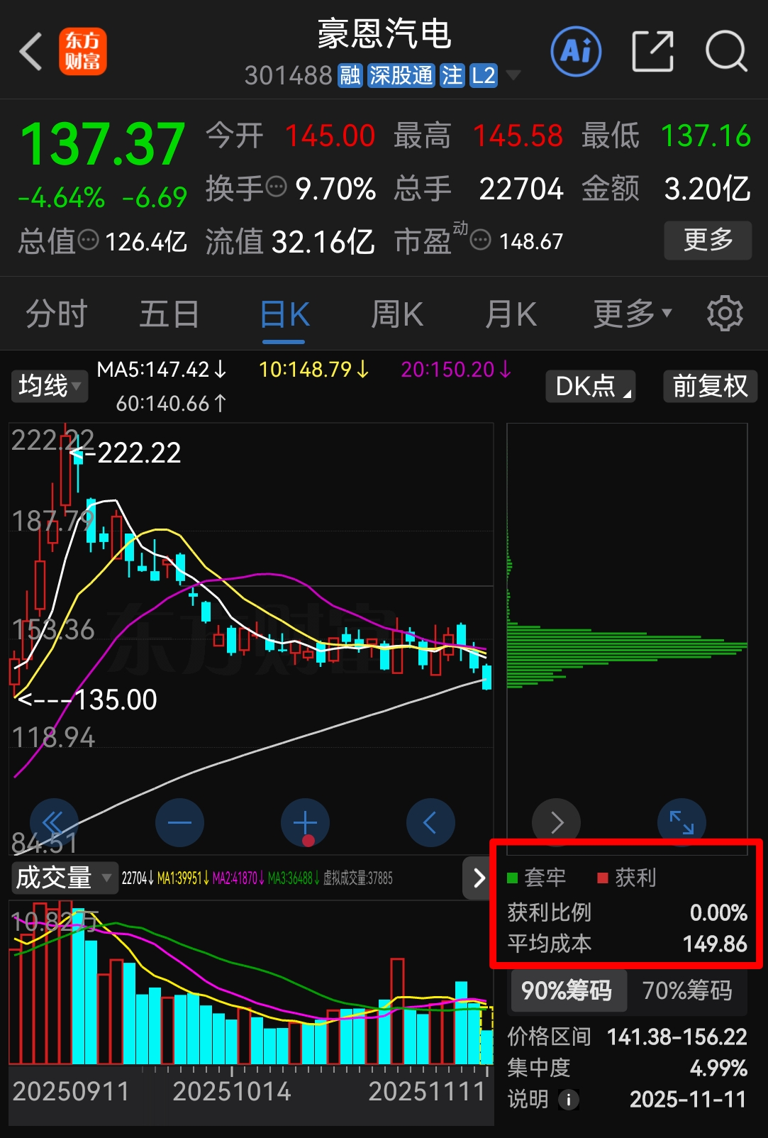 $豪恩汽电(SZ301488)$ 获利者0%,100%套牢,主力跑光,散户接盘
