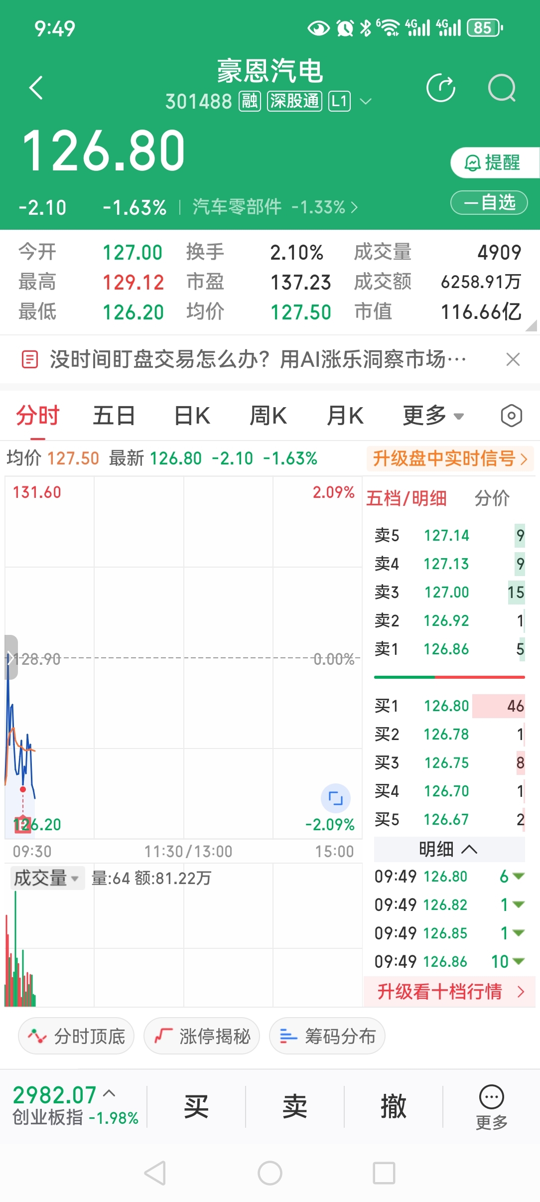 一直认为130以下是价值洼地,节奏大师的感觉又回来了,吃完腾景过来做豪恩,时间刚