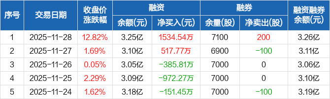豪恩汽电:融资净买入1534.54万元,融资余额3.25亿元(11-28)