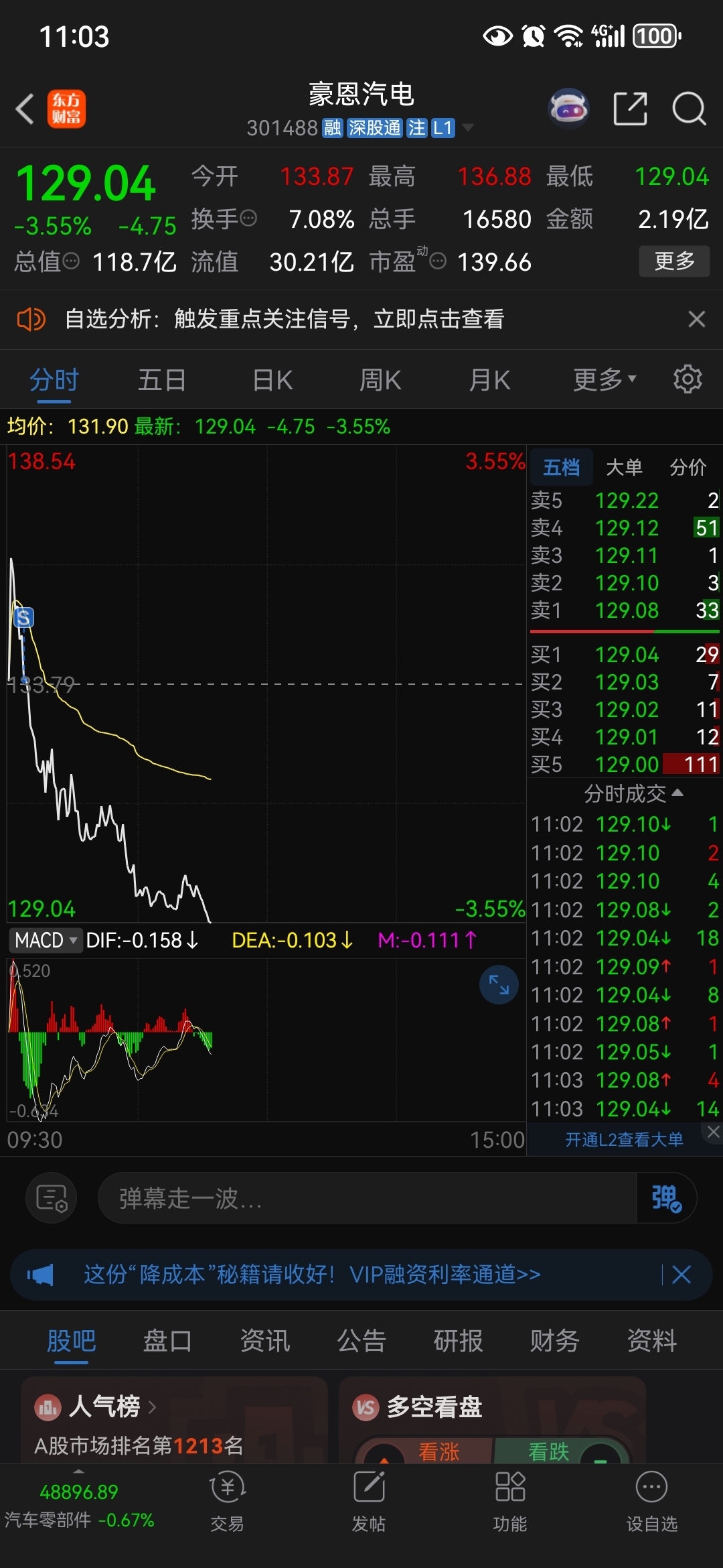 $豪恩汽电(SZ301488)$ 刚开始以为没吃到肉,现在看还好跑得快
