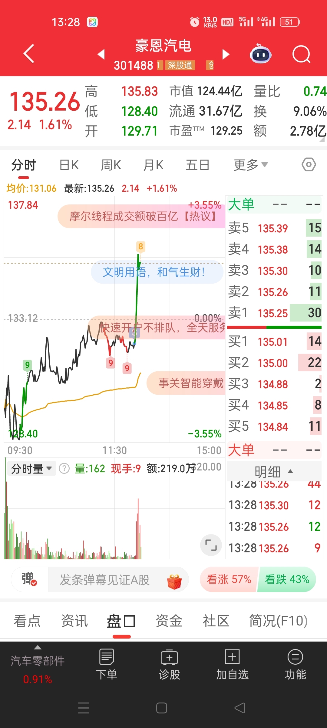 $豪恩汽电(SZ301488)$ 卖了一分钟就拉生 你是人不