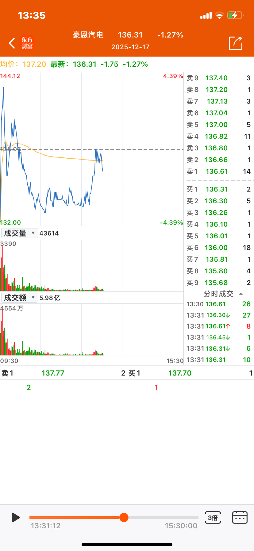 $豪恩汽电(SZ301488)$ 老庄股了,一百多手都能分时砸跳水