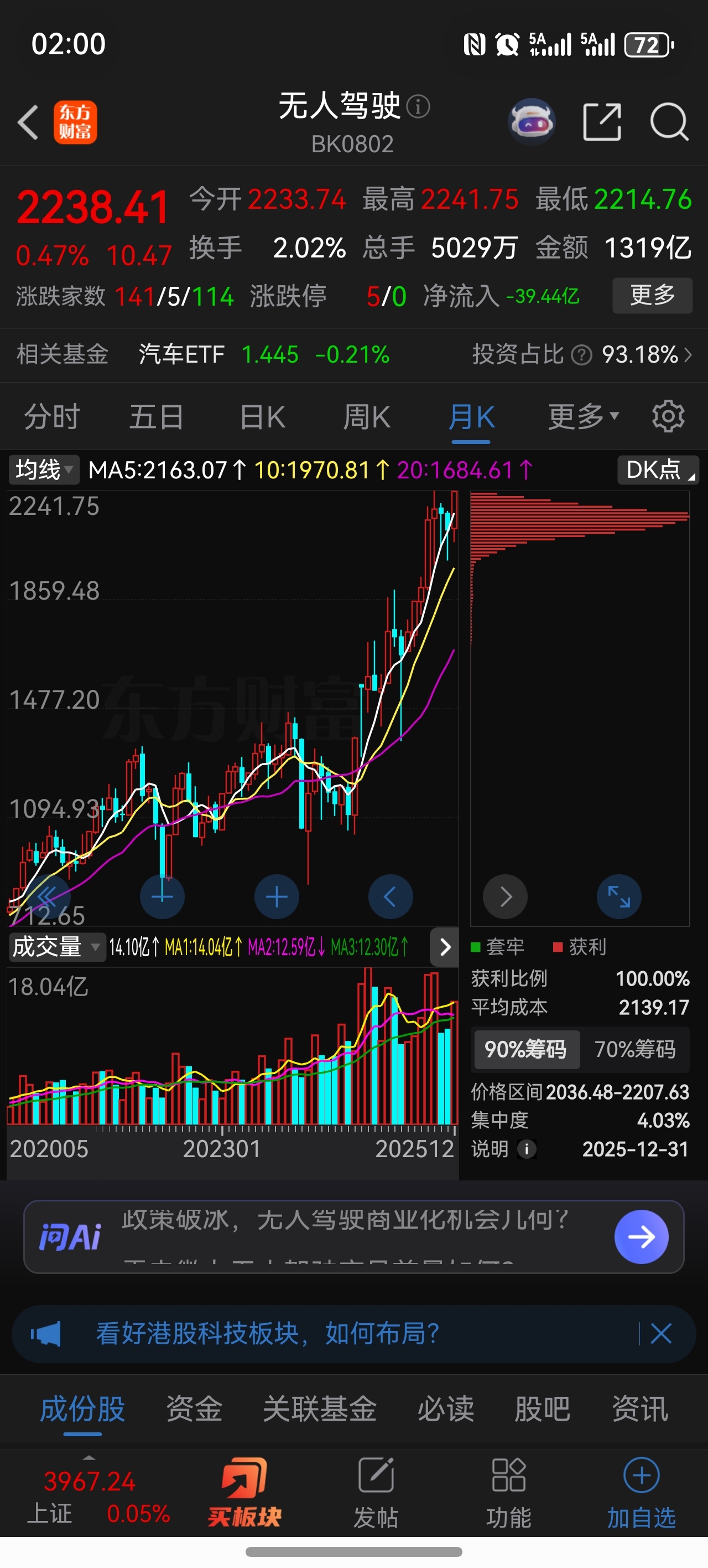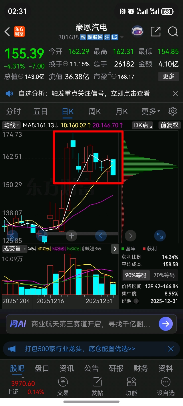 $豪恩汽电(SZ301488)$ 无人驾驶指数已创历史新高,月线年线收官也是历史新高,豪恩主业不跟无人驾驶,副业不跟人形机器人,归根到底还是定增打压!150不破则维持150-180箱体震荡局势,目前已到150箱体下缘,逢低买入!期待2026能大放异彩!
