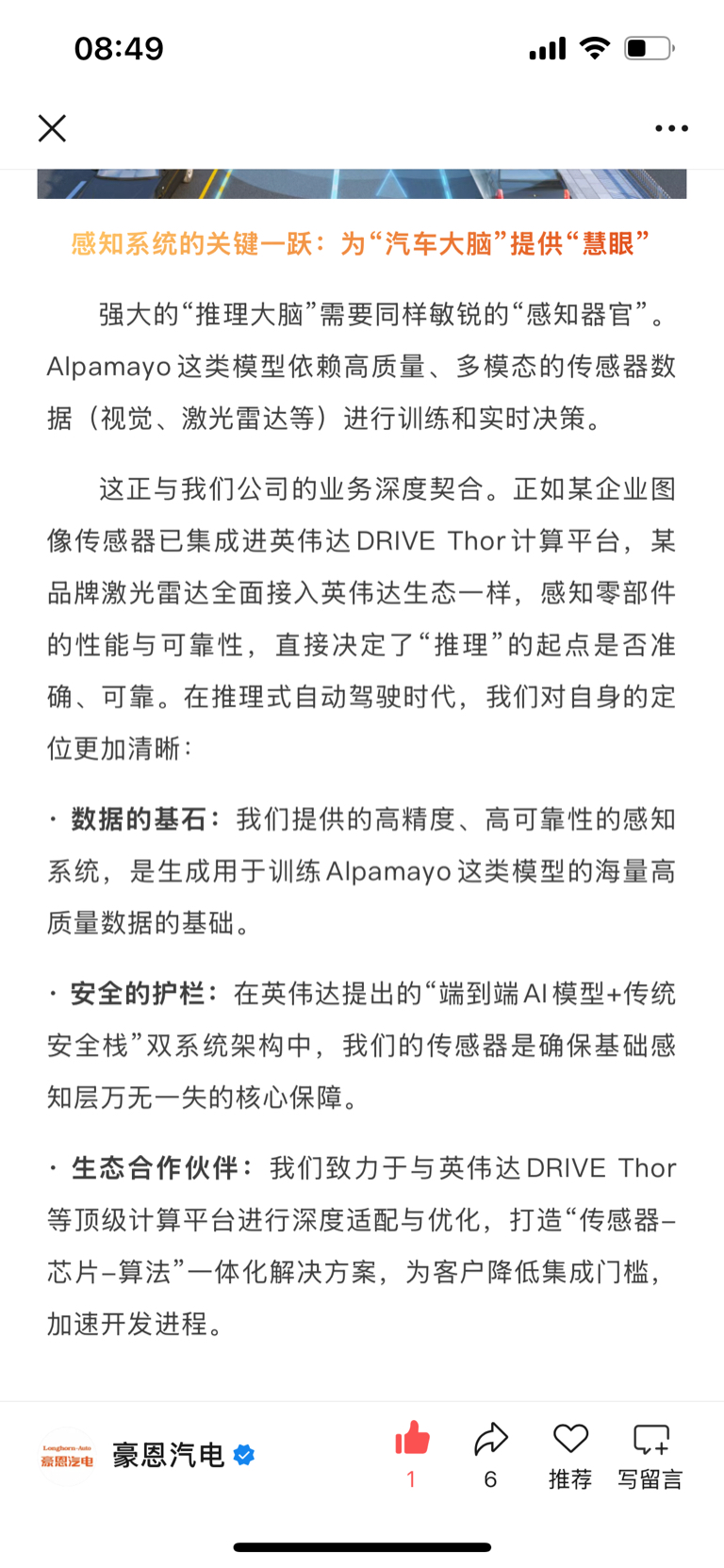 汽车的“推理”时代已经开启。它的“大脑”正在飞速进化,而豪恩汽电将确保它的“眼睛”和“神经”同样敏锐、可靠。豪恩已准备好,与业界伙伴一同,赋能更安全、更智能的出行未来。