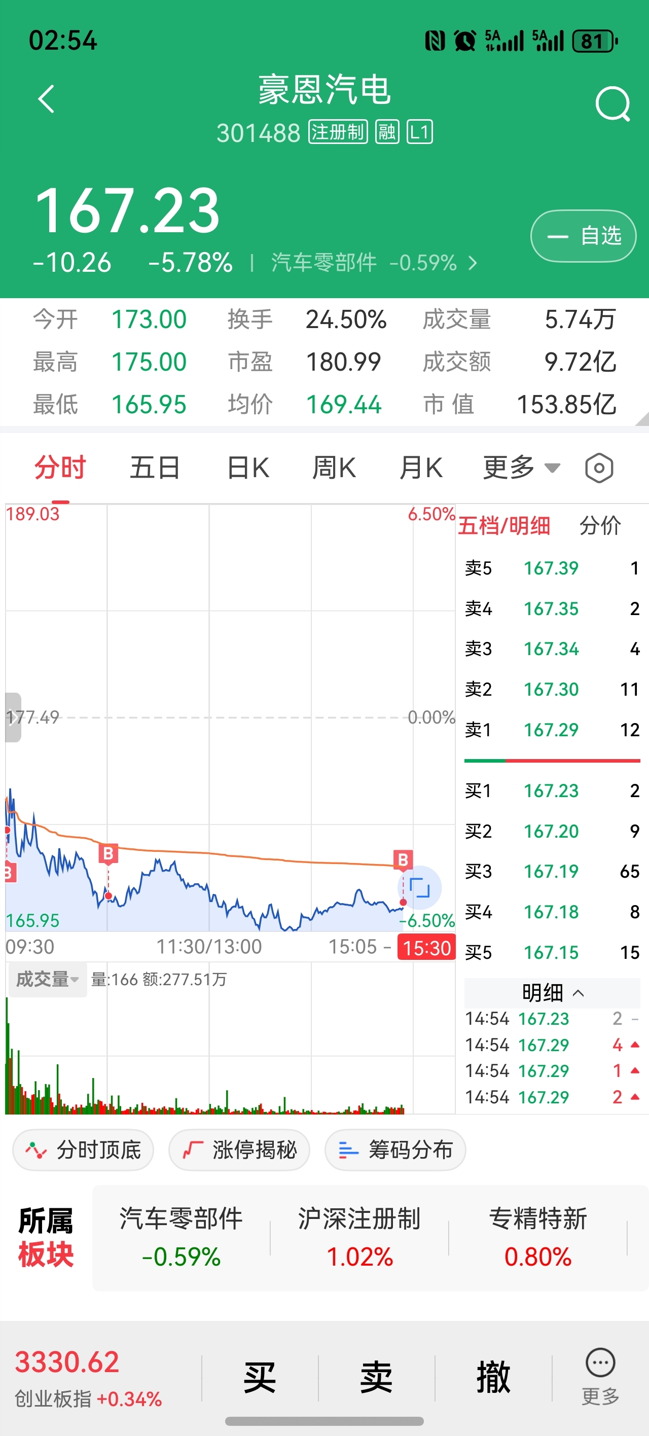 $豪恩汽电(SZ301488)$ 今天就补这么多,明天五日线附近再上点仓位