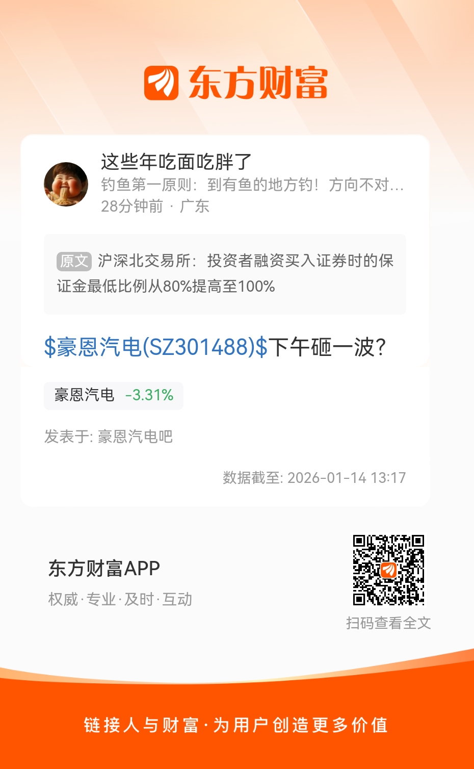 温馨提示: 1.根据《证券法》规定,禁止编造、传播虚假信息或者误导性信息,扰乱证券市场;2.用户在本社区发表的所有资料、言论等仅代表个人观点,与本网站立场无关,不对您构成任何投资建议。用户应基于自己的独立判断,自行决定证券投资并承担相应风险。《东方财富社区管理规定》