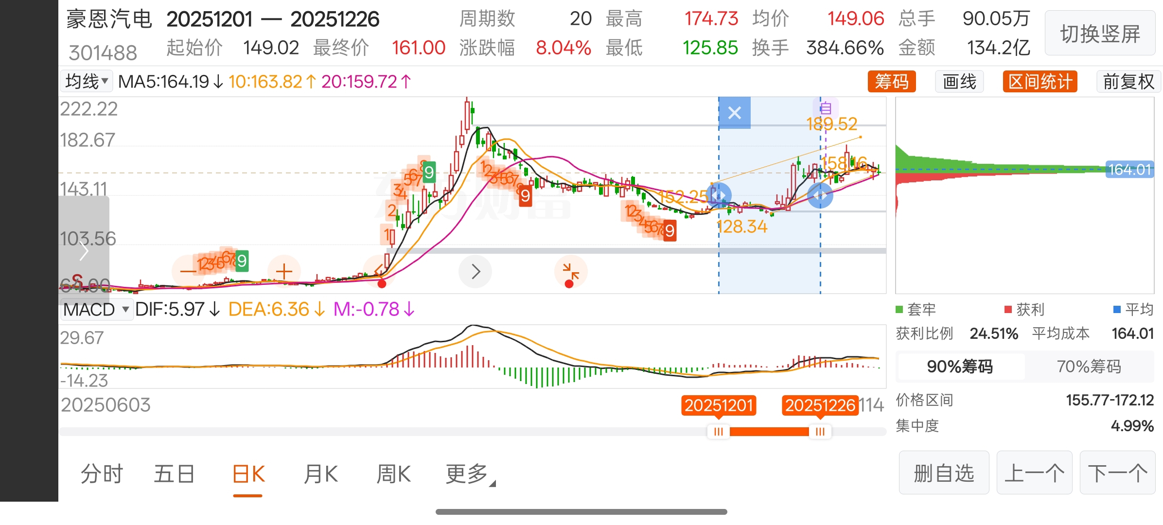 $豪恩汽电(SZ301488)$ 兄弟们,价格是不低于149的百分之八十