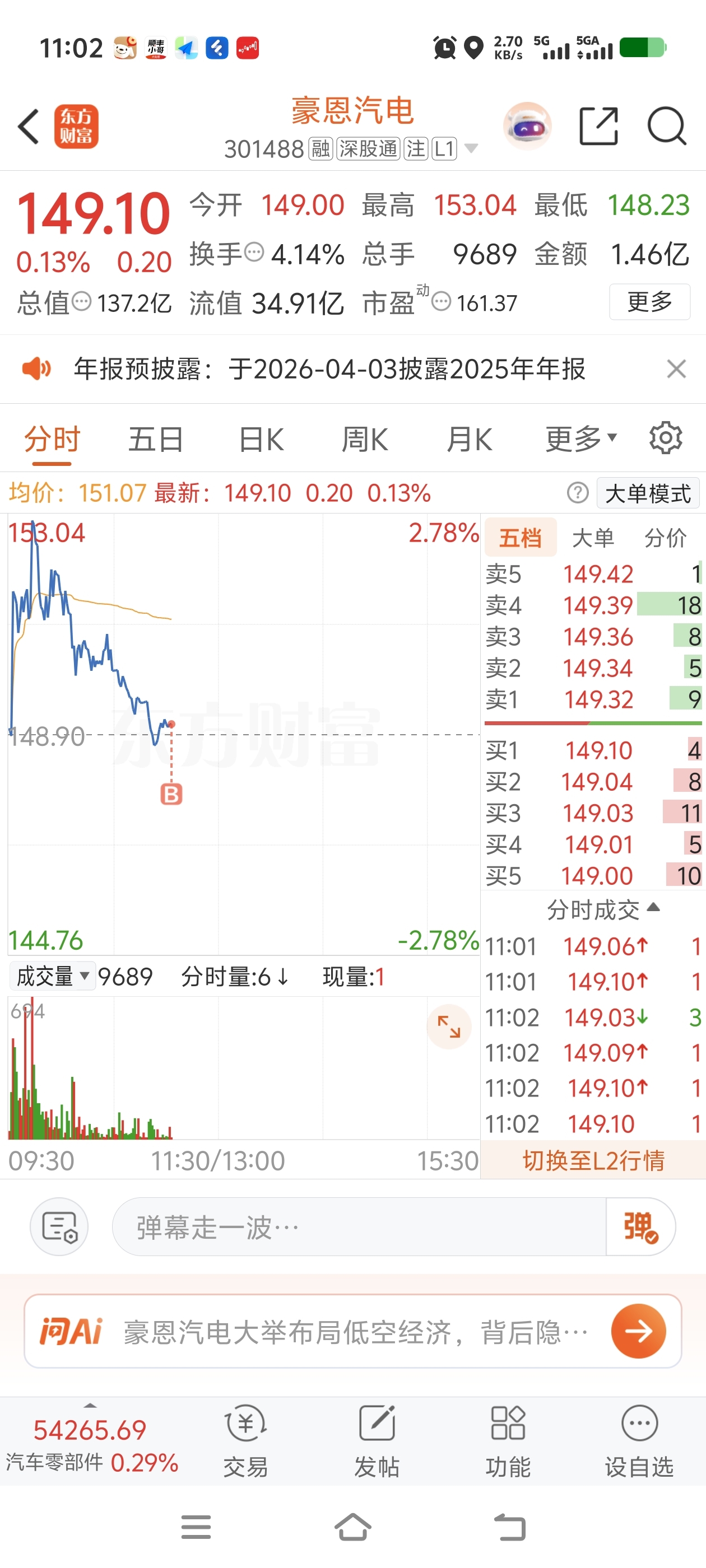 $豪恩汽电(SZ301488)$ B了,这周绝对有个阳
