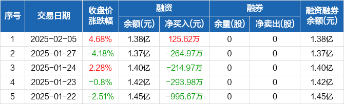 思泉新材:融资净买入125.62万元,融资余额1.38亿元(02-05)