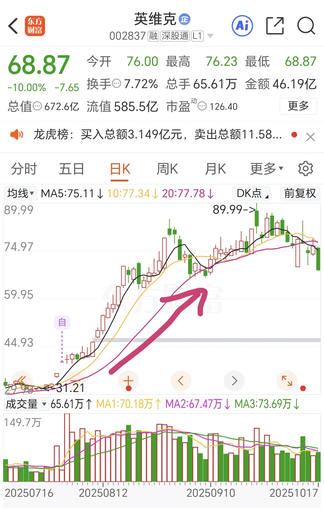 思泉7月底看到八十多才介入,其实五十多就想买,但也是恐高心理,一个多月涨到三百多,从起爆点算主升浪翻了近六个倍。哪怕英维克也是接近二个倍。