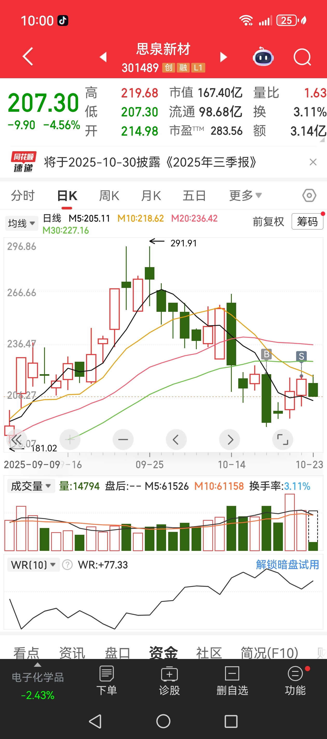 $思泉新材(SZ301489)$ 卖的就是这么准,今天不破新低就买回来