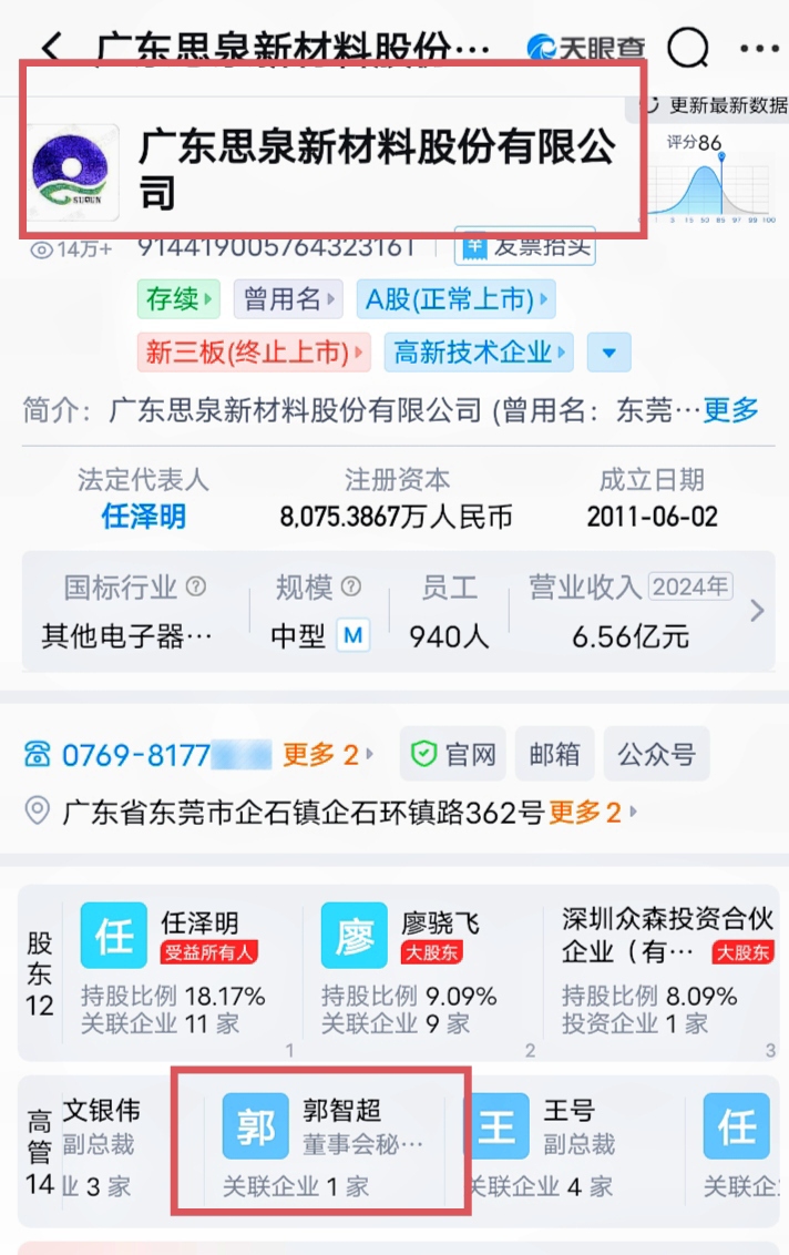 $思泉新材(SZ301489)$ 天眼查,董秘,叫郭智超。其他的,应该是假的。