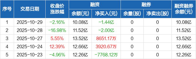 思泉新材:融资净偿还1.44亿元,两市排名第14(10-29)