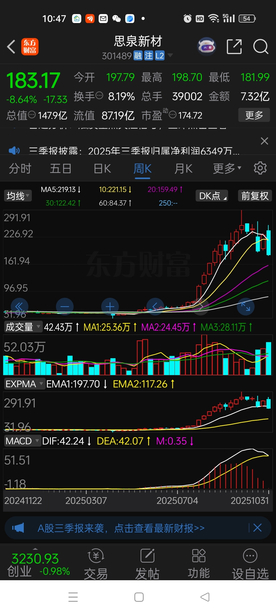 $思泉新材(SZ301489)$ 周线级别死叉,最起码跌3周