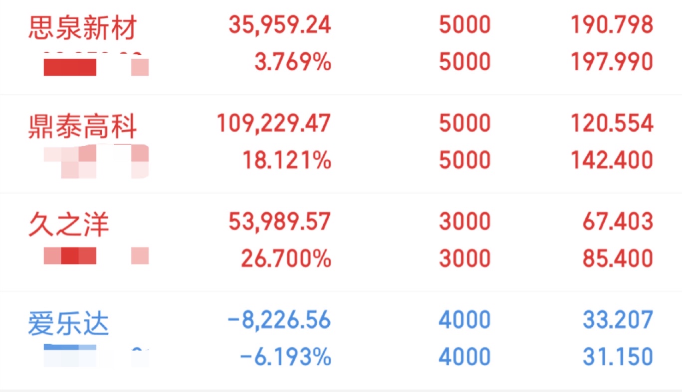 • 继续持有: 思泉新材,鼎泰高科,久之洋,爱乐达