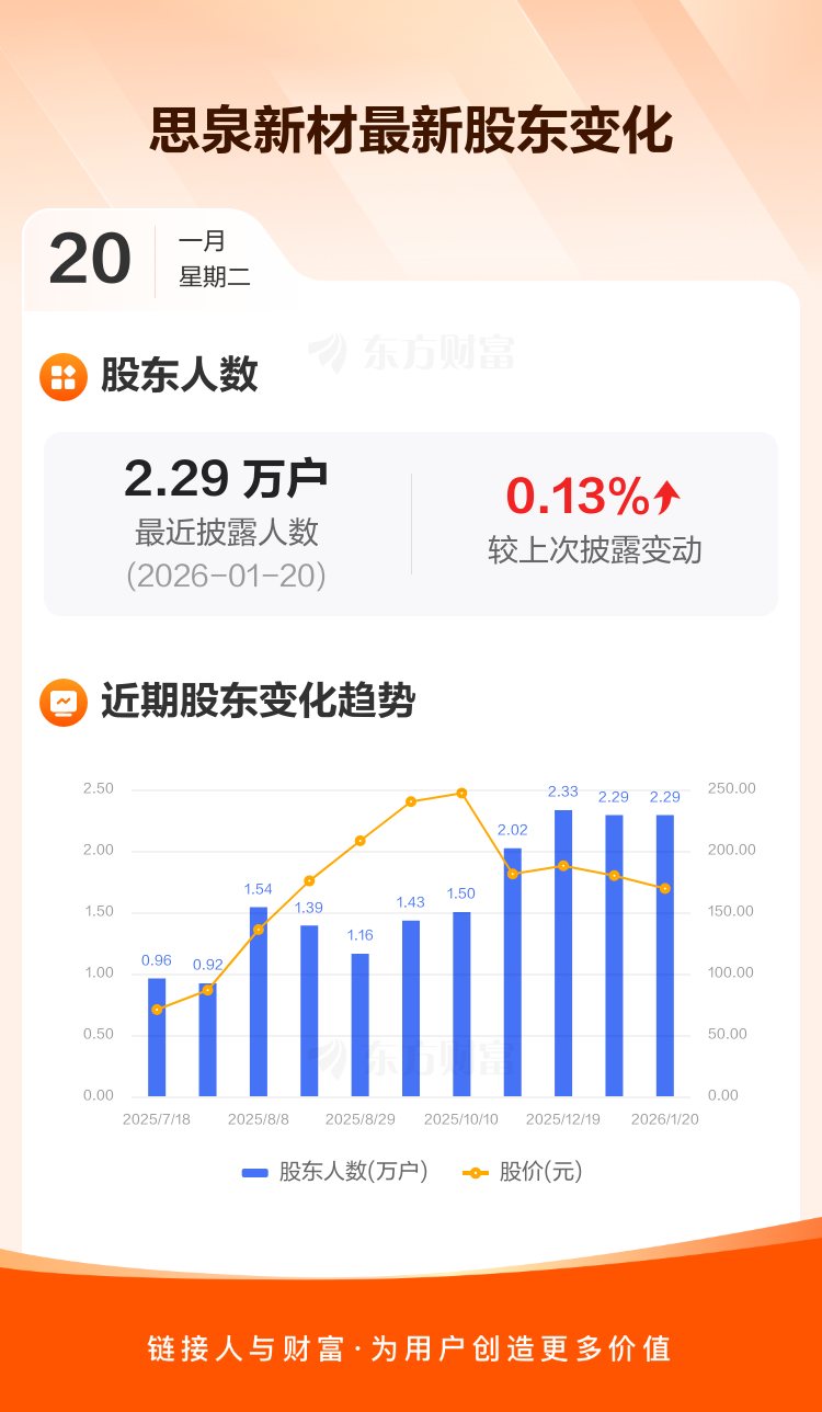思泉新材:截至1月20日最新股东户数2.29万户,较上期增加0.13%