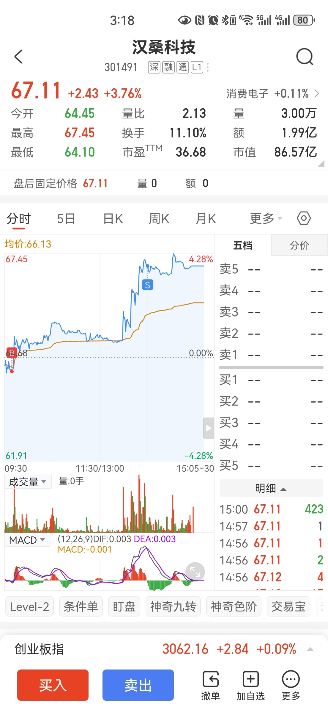 $汉桑科技(SZ301491)$ 今天再参与支持一下