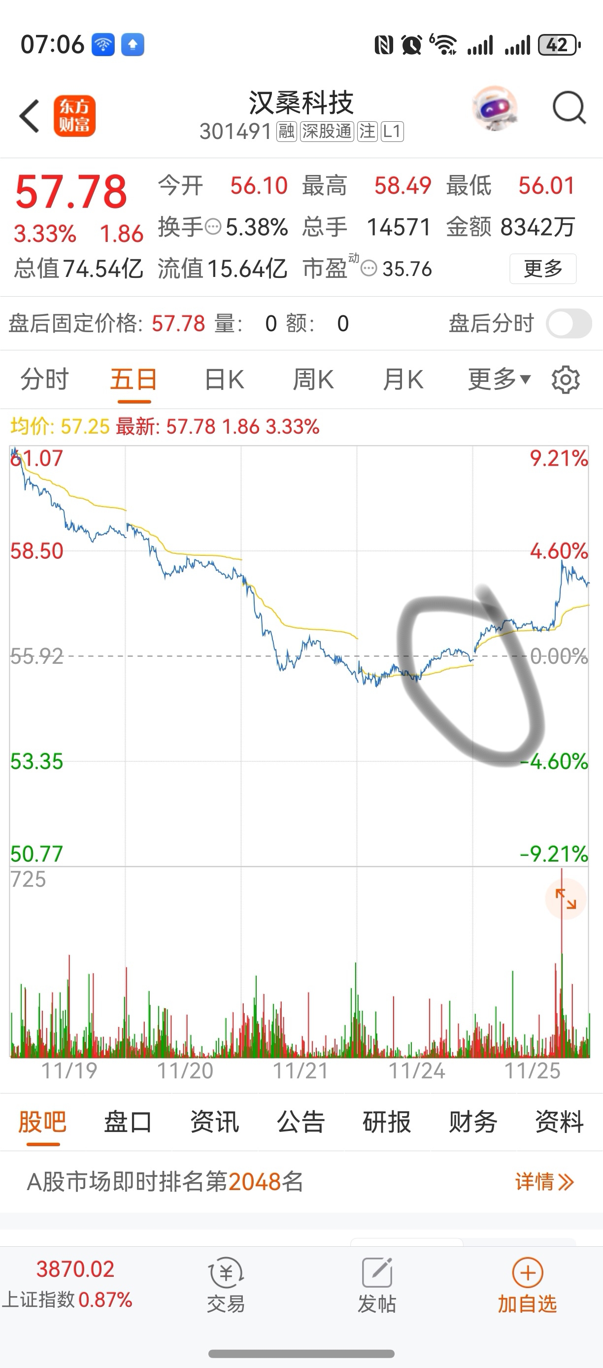 $汉桑科技(SZ301491)$ 看分时有缺口,不会是诱多逢缺必补吧
