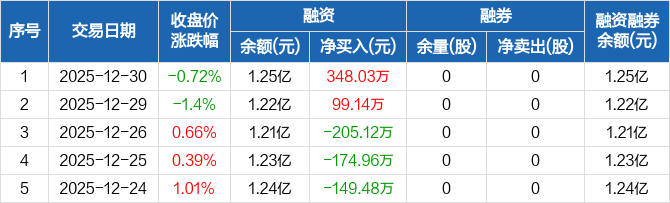 汉桑科技:融资净买入348.03万元,融资余额1.25亿元(12-30)