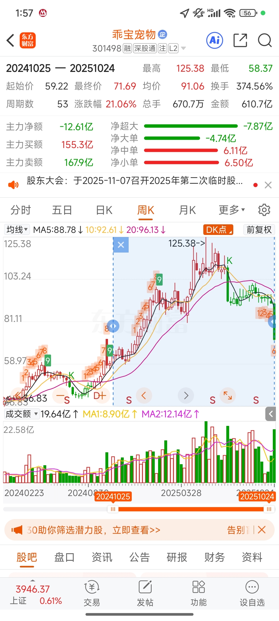 $乖宝宠物(SZ301498)$ 换手率也不算高啊