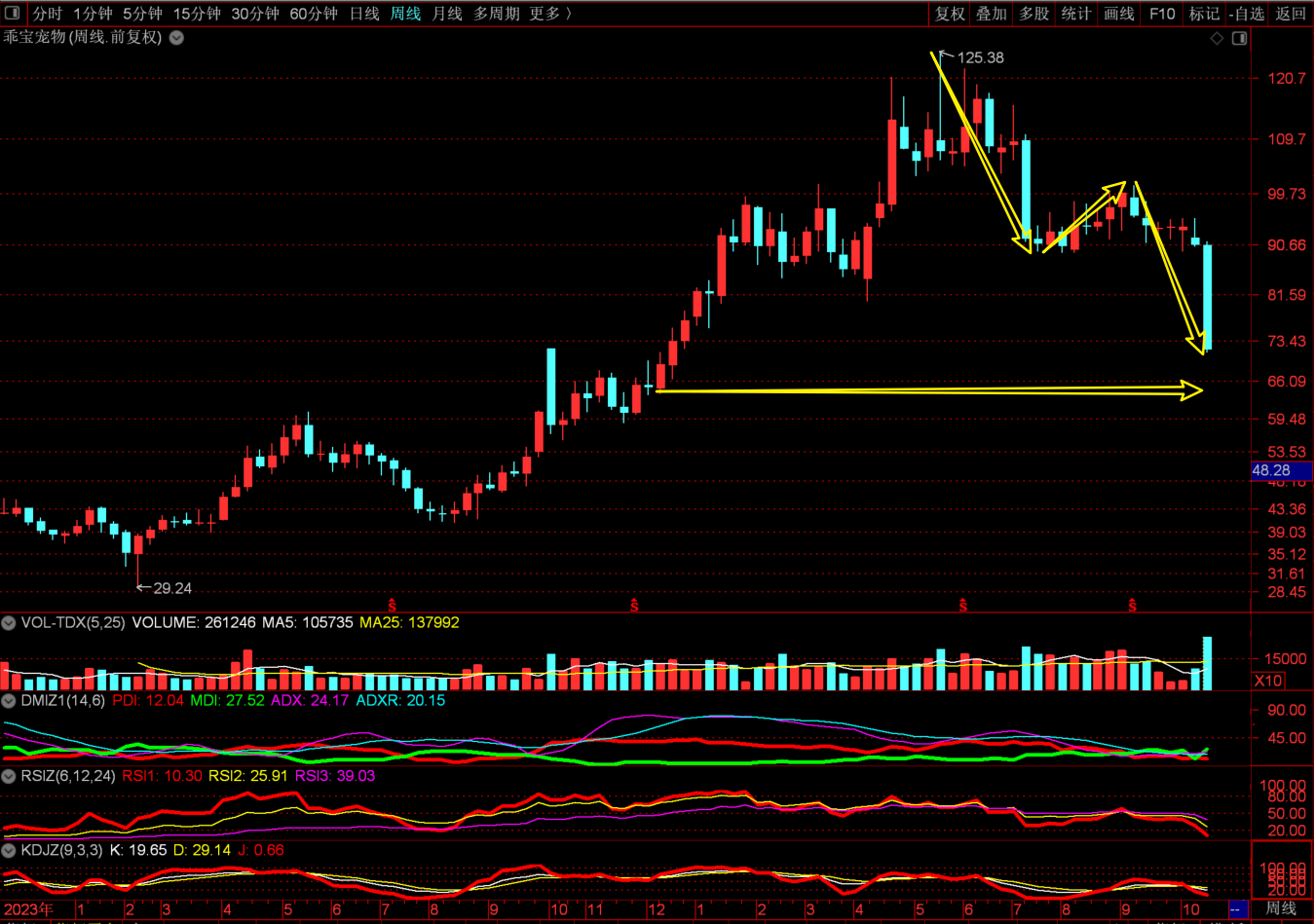 一周跌去20%,是遭了吗?要退市也没这么跌的。周线看ABC三浪杀已经走完了,