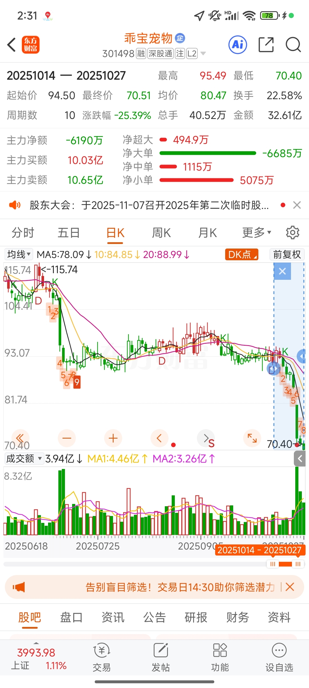 $乖宝宠物(SZ301498)$ 换手率不高,大家的筹码还在手里