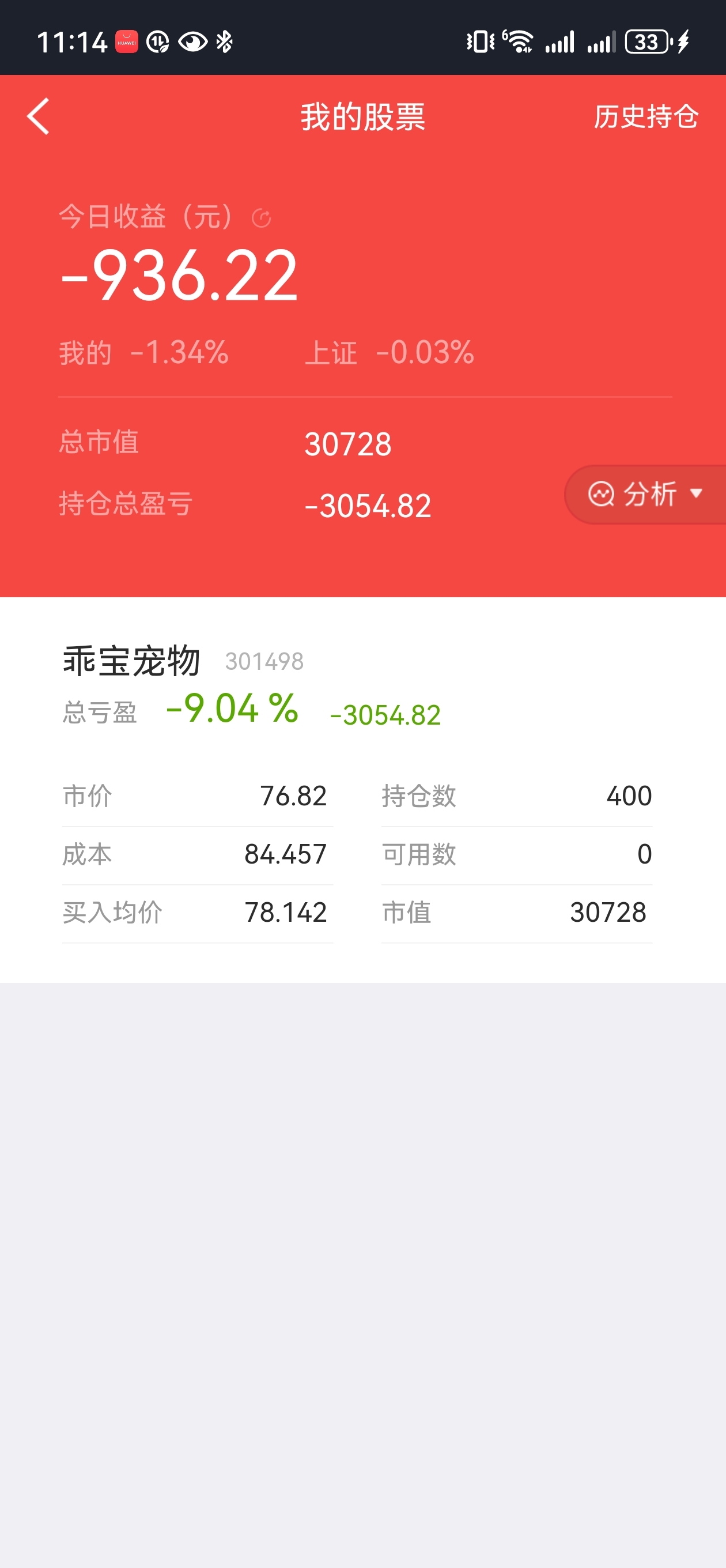 $乖宝宠物(SZ301498)$ 啥时候回本啊,85的本