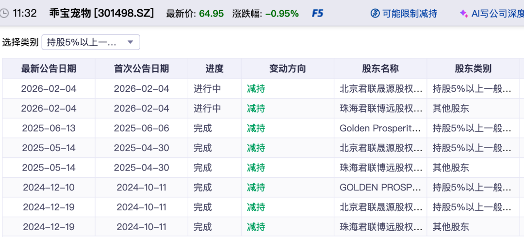 值得注意的是,这并非北京君联和珠海君联首次减持乖宝宠物,此前二者已通过多次减持降低持股比例。