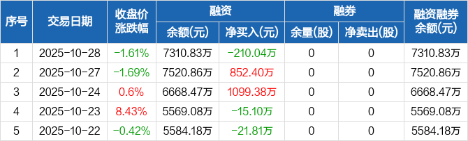 维科精密:融资净偿还210.04万元,融资余额7310.83万元(10-28)