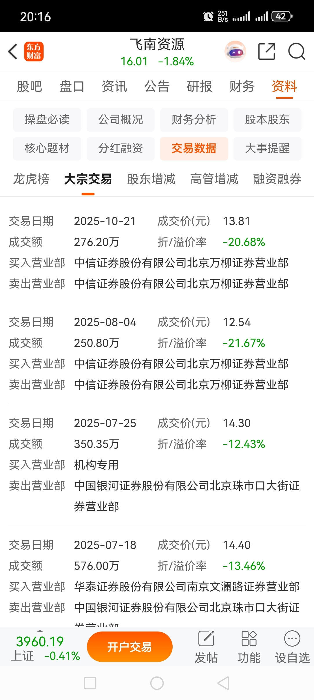$飞南资源(SZ301500)$ 现在看来,就是这些大宗的折价筹码在砸盘,熬着吧,等主力回收筹码就好过一些了