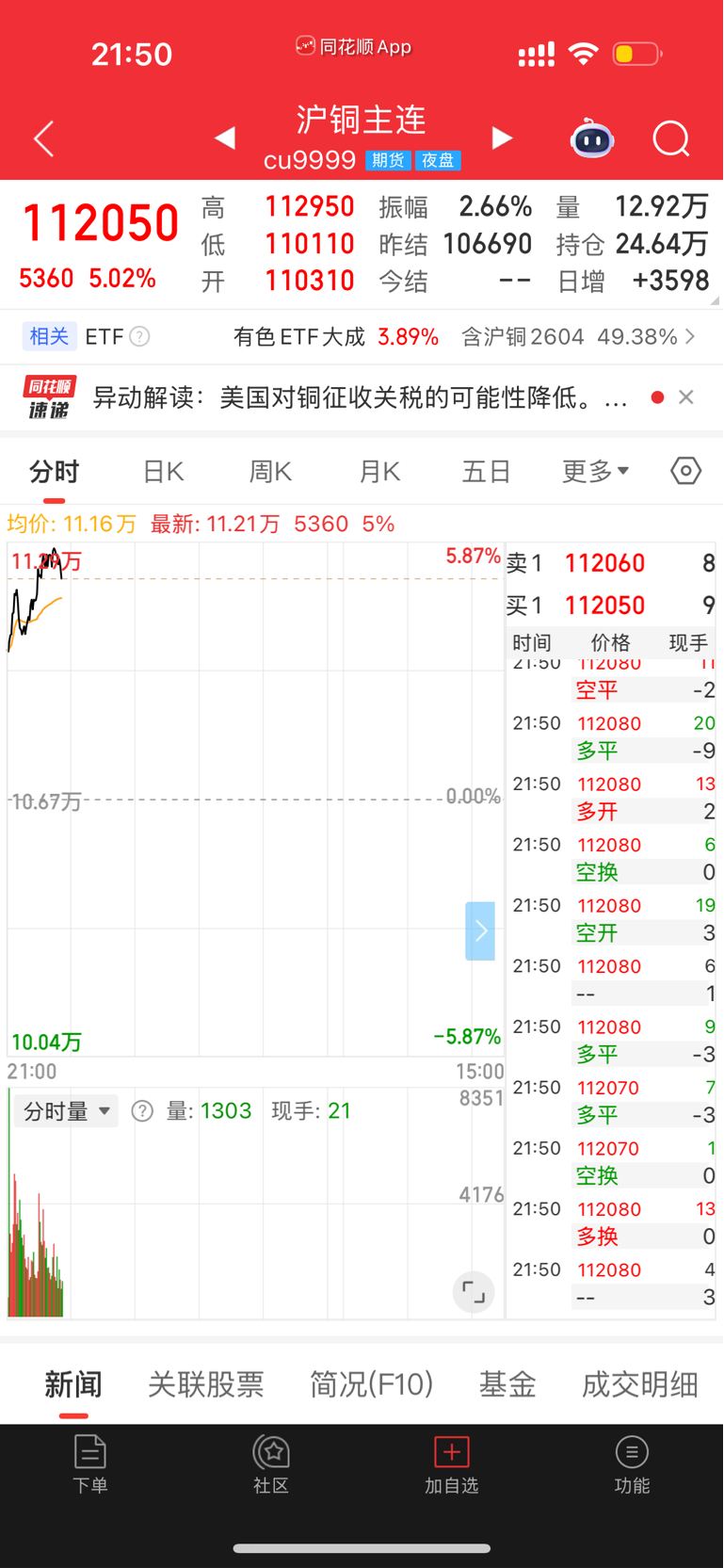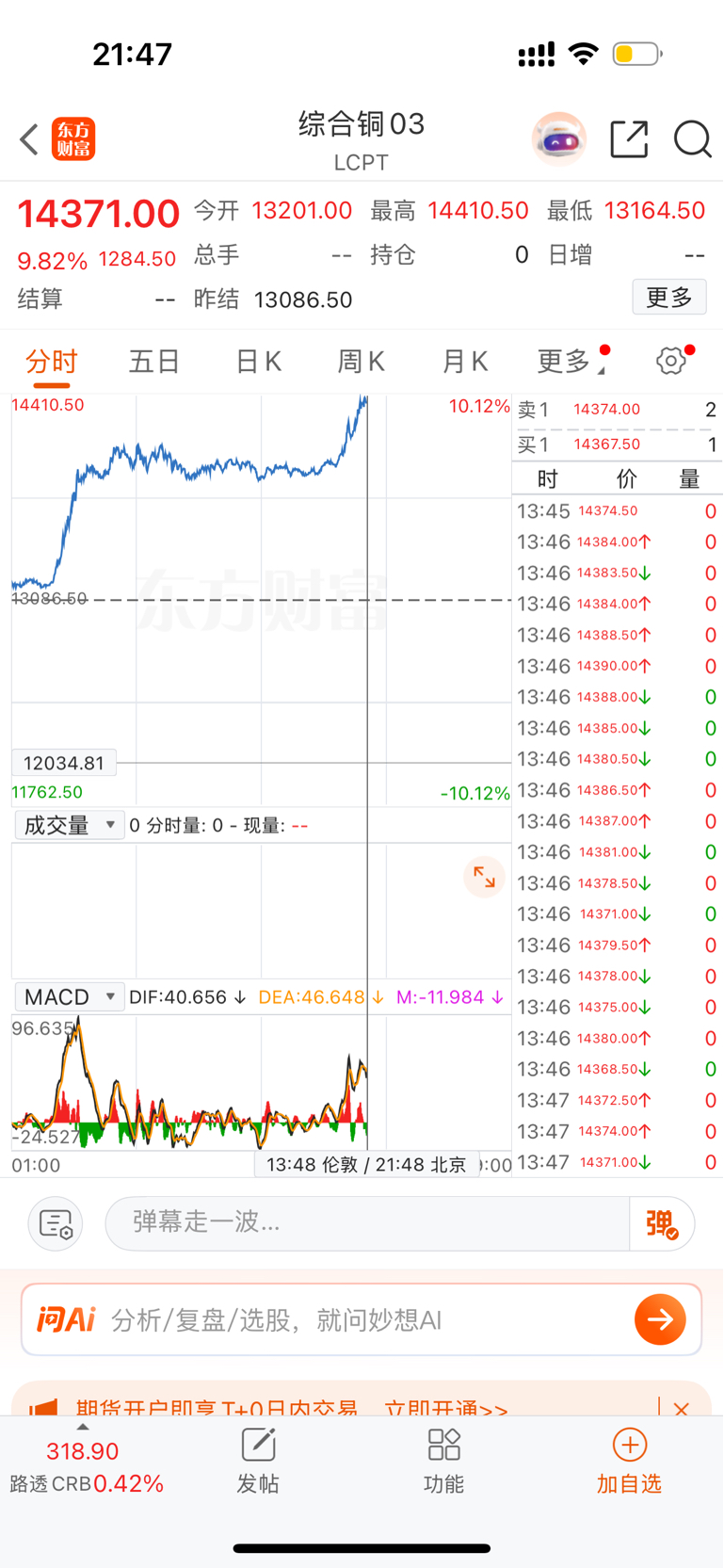 明天铜有色跟昨天黄金一样全部都要涨停了。
