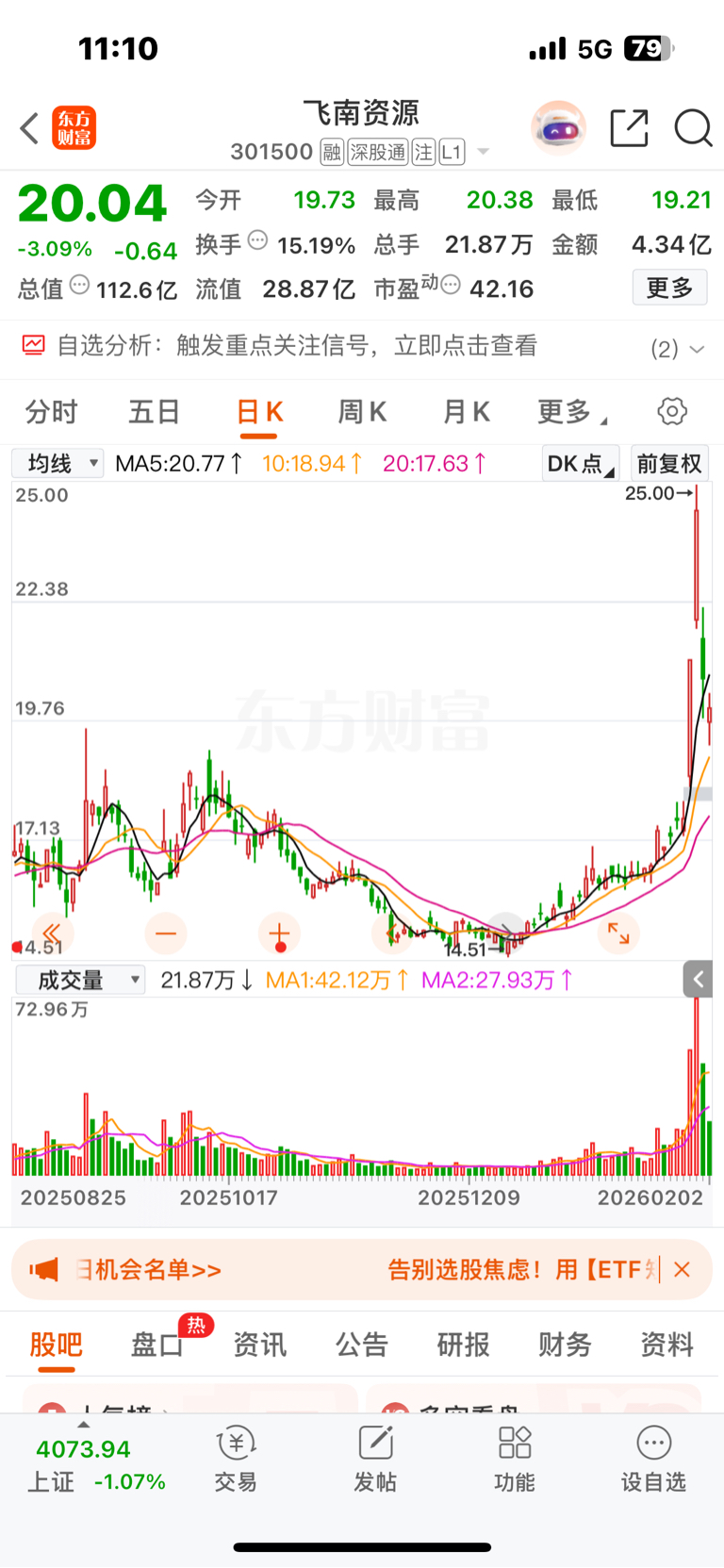 $飞南资源(SZ301500)$ 等向下回补缺口再研究要不要抢反弹,急不得,人急则无智。