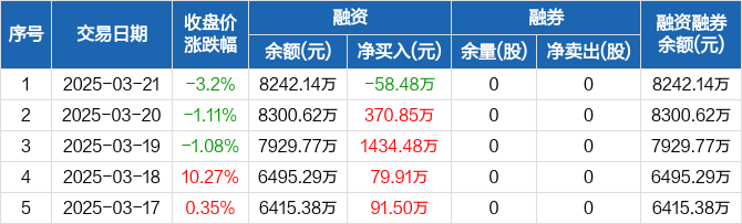 华阳智能:融资净偿还58.48万元,融资余额8242.14万元(03-21)