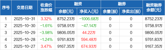 苏州规划:融资净偿还1006.68万元,融资余额8752.23万元(10-31)