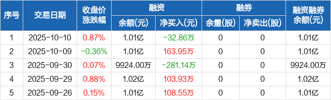民生健康:融资净偿还32.86万元,融资余额1.01亿元(10-10)