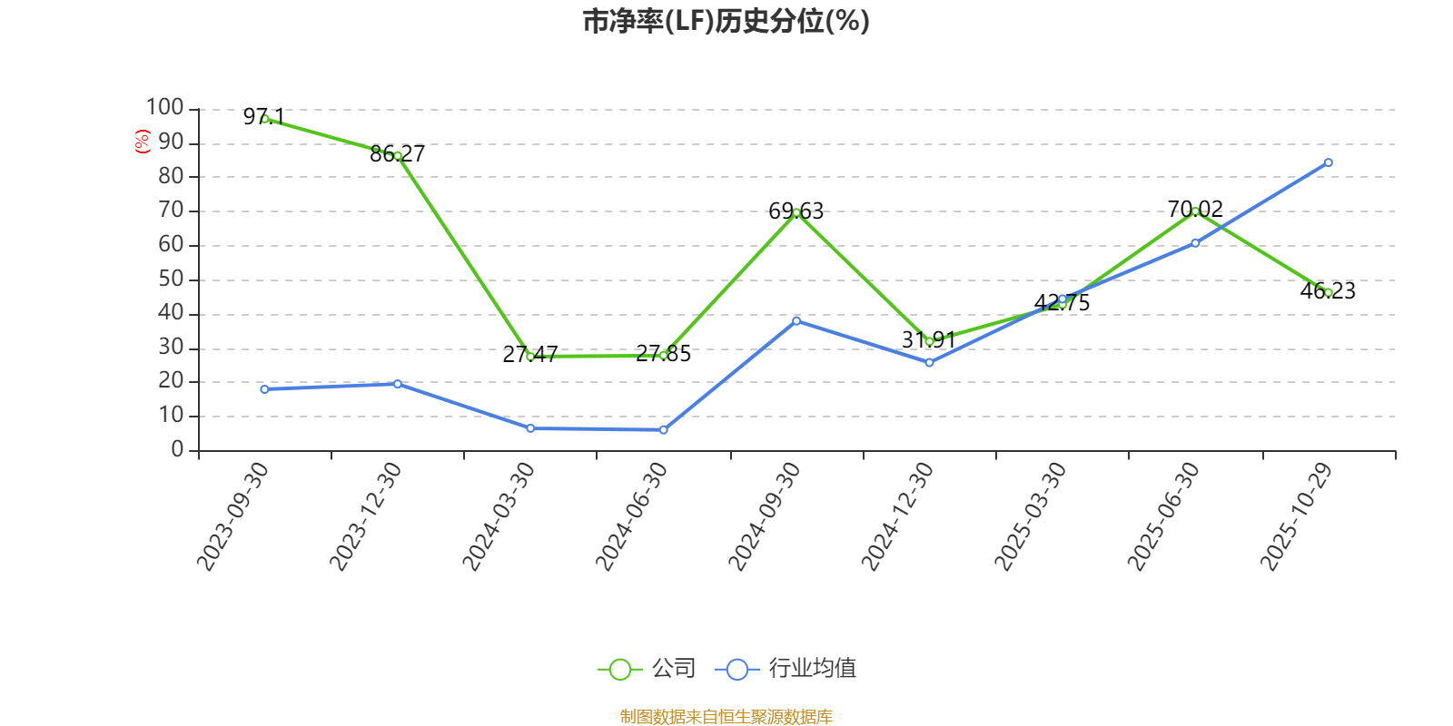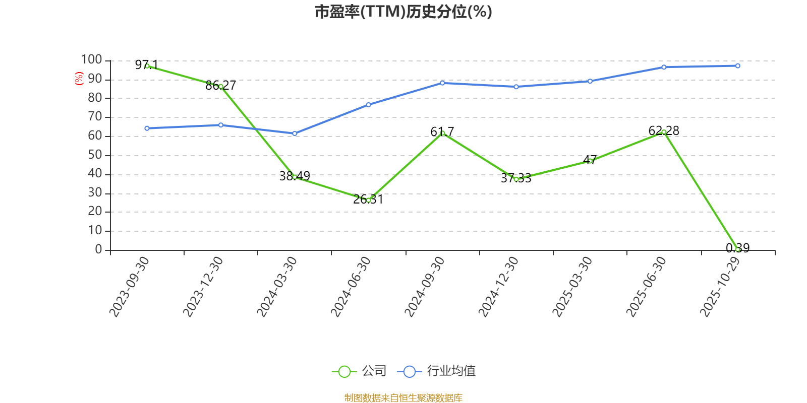 市盈率、市净率为负时,不显示当期分位数,会导致折线图中断。