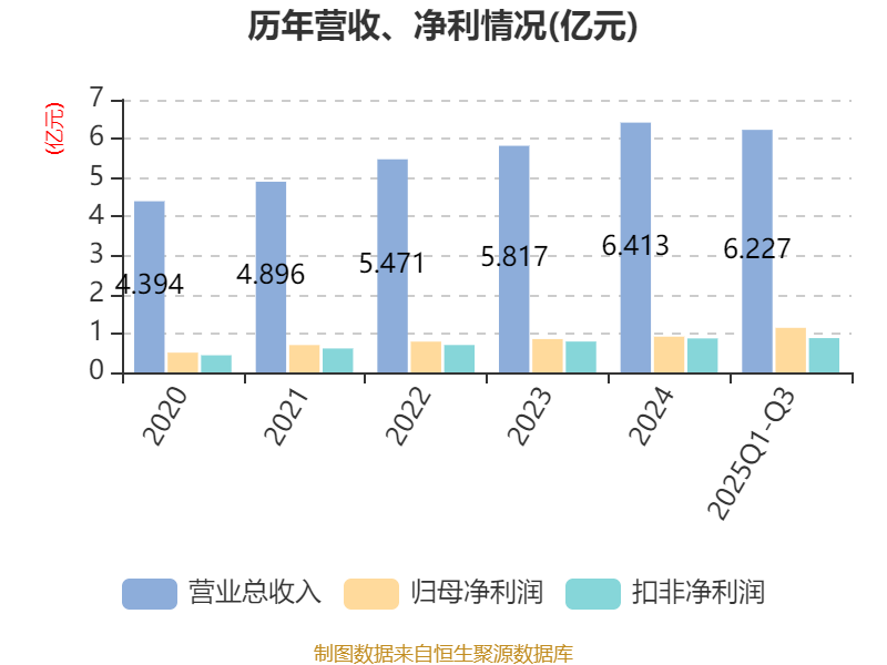 中证智能财讯民生健康(301507)10月30日披露2025年第三季度报告。前三季度公司实现营业总收入6.23亿元,同比增长19.78%;归母净利润1.14亿元,同比增长32.77%;扣非净利润8796.99万元,同比增长6.79%;经营活动产生的现金流量净额为1.58亿元,同比增长56.52%;报告期内,民生健康基本每股收益为0.32元,加权平均净资产收益率为7.24%。